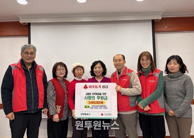 차형수 고봉동장은 “어려운 시기에 따뜻한 나눔을 실천해 주셔서 더욱 뜻깊다”며 “전해주신 성금은 도움이 절실한 주민들을 위해 소중히 사용하겠다”고 전했다.