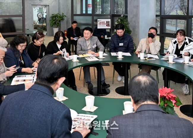(원투원뉴스) 의정부시는 12월 24일 송산3동 행정복지센터 1층 주민공유공간에 조성된 ‘두물머리 카페 아르츠’에서 송산권역의 주요 변화와 현안을 공유하는 ‘송산권역 현장 티타임’을 진행했다.