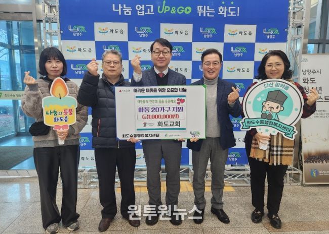 (원투원뉴스) 남양주시는 24일 화도교회가 관내 취약계층 아동을 위한 후원금 100만 원을 화도읍 지역사회보장협의체에 전달했다고 밝혔다.