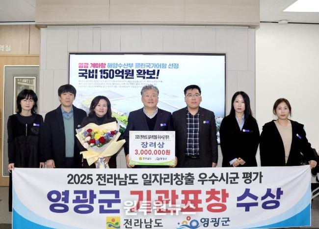 (원투원뉴스) 영광군은 12월 24일 여수시 엑스포 컨벤션센터에서 열린 ‘전라남도 일자리․경제 한마당’ 행사에서, 2025년 전라남도 일자리 창출 우수 시․군 평가 ‘장려상’을 수상했다.