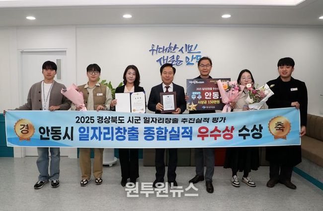 (원투원뉴스) 안동시는 12월 23일 안동 그랜드호텔에서 열린 '2025 경상북도 일자리대상' 시상식에서 추진실적평가 부문 우수상과 유공공무원 표창을 수상했다.