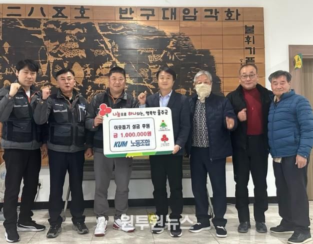 (원투원뉴스) KUM노동조합이 24일 울주군 두서면 취약계층을 돕기 위해 성금 100만원을 기탁했다.
