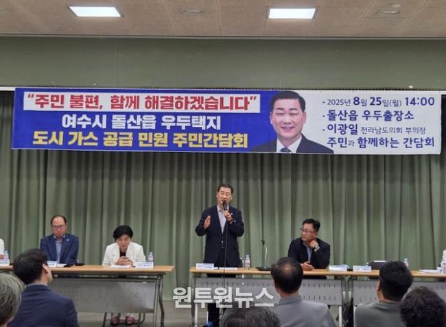 이 부의장은 지난 8월 돌산읍 우두리 주민들과 도시가스 공급 문제를 놓고 간담회를 연 사실을 언급하며, “여수시 전체 도시가스 보급률은 90%를 넘지만, 돌산 우두리 단독주택 지역의 보급률은 36%에 그쳤다”며 “같은 여수 안에서도 난방 여건의 격차가 분명히 존재한다”고 지적했다.
