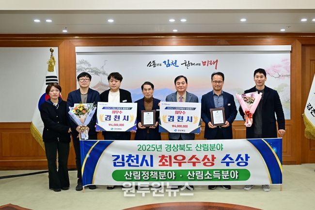 (원투원뉴스) 김천시는 지난 12월 22일, 경상북도가 실시한 2025년 산림정책분야 및 산림소득분야 평가에서 모두 최우수에 선정되며 우수한 산림행정 성과를 공식적으로 인정받았다.