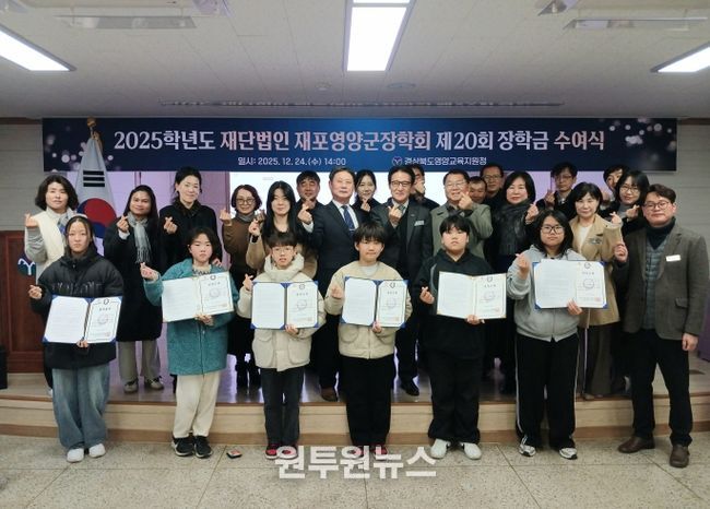 (원투원뉴스) 경상북도영양교육지원청은 12월 24일 관내 초등학교 6명을 대상으로 재단법인 재포영양군장학회가 주관하는 2025학년도 재단법인 재포영양군장학회 제20회 장학금 수여식을 영양교육지원청 3층 대회의실에서 실시했다.