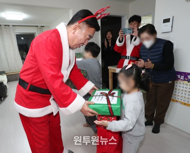 (원투원뉴스) 청주시는 지난 23일 이범석 청주시장과 무심천라이온스클럽(회장 신동욱) 회원 30여명이 산타클로스로 변신해 지역 내 저소득 가정 아동 100명에게 크리스마스 선물을 전달했다.