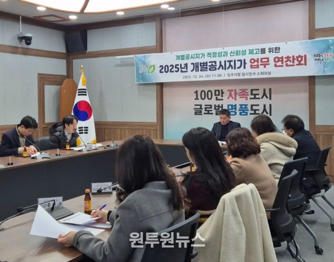 (원투원뉴스) 청주시는 24일 임시청사 소회의실에서 2026년 공시지가 업무추진을 위한 연찬회를 개최했다.