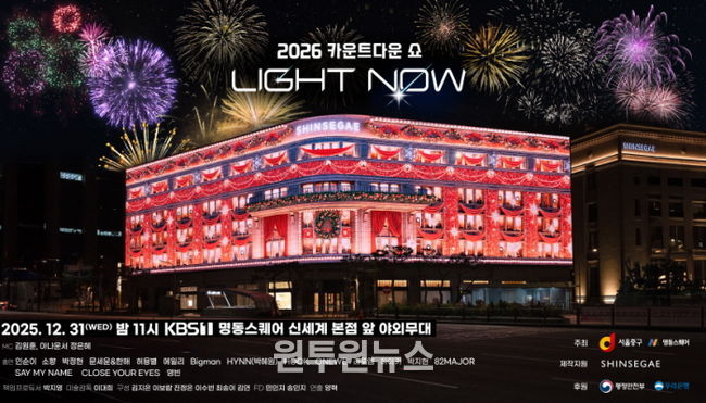 (원투원뉴스) 서울 중구는 오는 12월 31일 밤 11시, 명동스퀘어 일대에서 열리는〈2026 카운트다운 쇼 LIGHT NOW〉를 'KBS1TV'와 'KBS 유튜브' 채널을 통해 전 세계에 생중계한다고 밝혔다. 행사 현장에 방문하지 못하더라도 TV와 모바일을 통해 편안하게 새해의 감동을 함께할 수 있다.