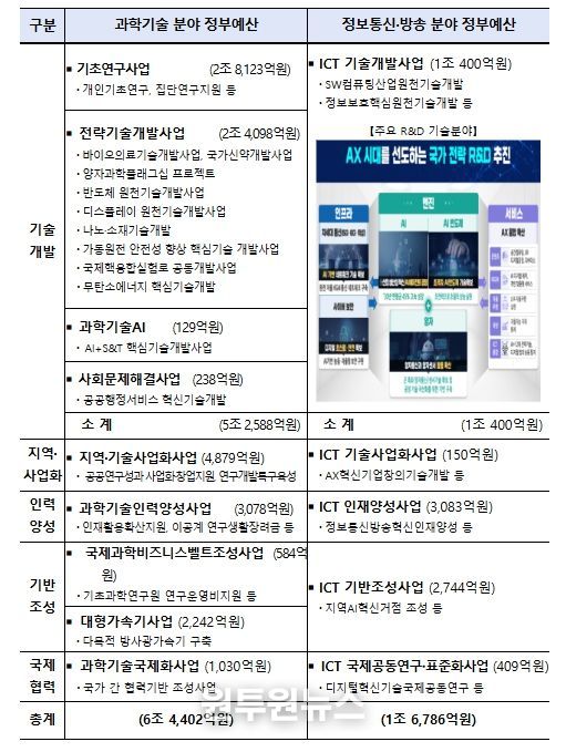 이번 종합시행계획은 2026년의 과기정통부 연구개발사업의 전반적인 추진방향과 분야별 추진계획을 확정하기 위해 수립됐다. 과학기술 분야 연구개발 예산 6조 4,402억원 및 정보통신‧방송(ICT) 분야 연구개발 예산 1조 6,786억원을 대상으로 하며, 지원 예산은 전년대비 약 25.4% 증가했다.