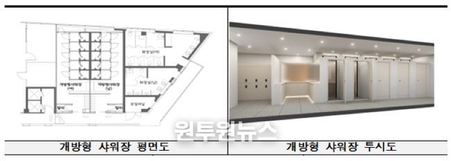 ‘개방형 샤워장’은 남‧녀 각 5개 개인별 샤워부스, 물품보관함 총 13개, 탈의실 2실 등을 갖추고 있다.