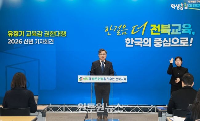 유정기 권한대행은 본청 강당에서 2026년 신년 기자회견을 열고 “올해는 2025년 현장에서 검증된 학력신장과 책임교육의 성과를 정책의 출발선으로 삼아 그 흐름을 더욱 단단히 이어갈 것”이라며 이렇게 말했다.