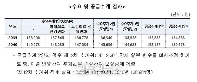 한편, 이날 보정심에 보고된 수급추계 결과는 다음과 같다.