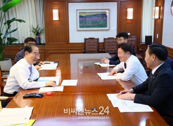 (비씨엔뉴스24) 오영훈 특별자치도지사는 16일 오후 3시 정부서울청사에서 한덕수 국무총리를 만나 제주형 행정체제 개편 주민투표 실시 지원과 2025 아시아태평양 경제협력체(APEC) 정상회의 제주 개최, 2035 탄소중립 제주 모델을 통한 선제적 선도사례 달성, 제주권 상급종합병원 지정 등 제주현안에 대한 더 큰 정부의 관심과 지원을 요청했다.