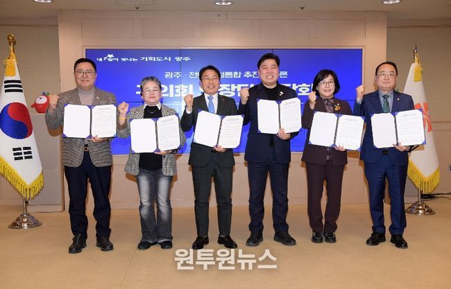 (원투원뉴스) 광주시와 5개 자치구의회가 (가칭)광주전남특별시의 성공적 안착을 위한 ‘대통합 공동 선언’을 발표했다.
