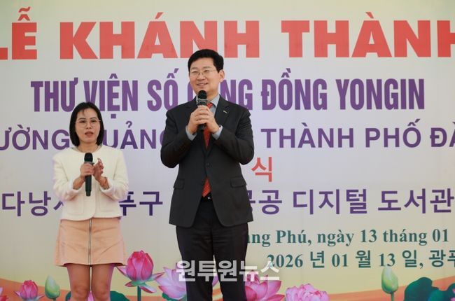 (원투원뉴스) 이상일 용인특례시장은 13일(현지 시각) 다낭시 광푸구에 위치한 사단법인 국제연꽃마을 복지타운에서 용인특례시가 공적개발원조(ODA) 사업으로 조성한 ‘다낭시 광푸구 용인 공공 디지털도서관’ 준공식에 참석해 축하의 뜻을 전했다.