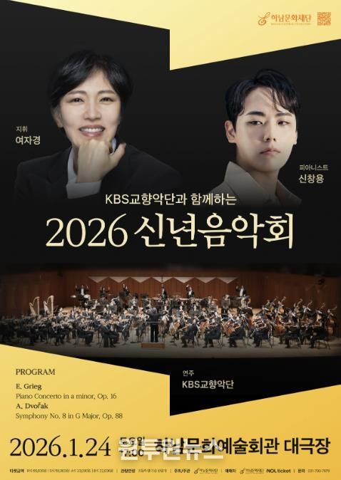 (원투원뉴스) (재)하남문화재단은 대한민국을 대표하는 KBS교향악단과 함께하는 '2026년 신년음악회'가 전석 매진을 기록하며, 오는 2026년 1월 24일 오후 5시, 하남문화예술회관 대극장에서 시민들을 만날 준비를 마쳤다고 밝혔다.
