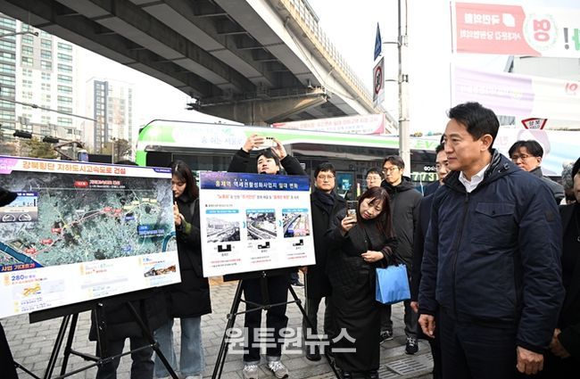 이날 오 시장은 유진상가와 홍은사거리 일대를 차례로 방문해 도시환경을 저해하고 지역발전의 걸림돌로 작용하는 내부순환로 지하화에 대한 효율적 추진 전략을 모색했다.