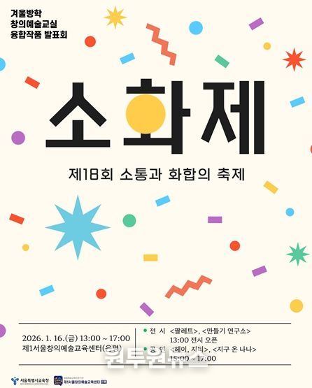 (원투원뉴스) 서울특별시교육청 제1서울창의예술교육센터는 1월 16일, ‘제18회 겨울방학 창의예술교실 융합발표회 〈소통과 화합의 축제〉를 개최한다.