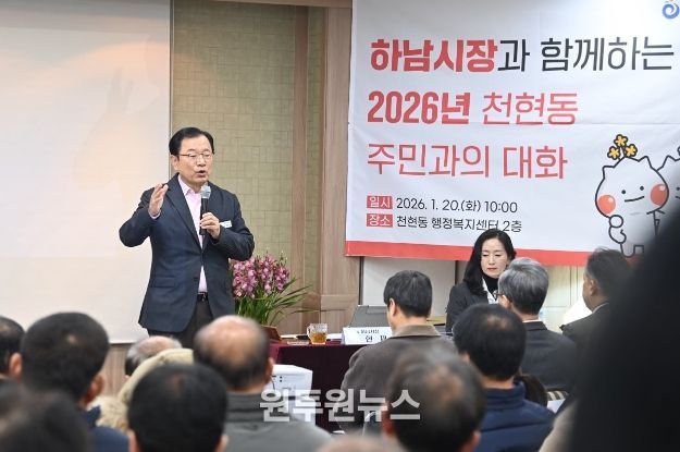 (원투원뉴스) 이현재 하남시장은 20일 감일동 행정복지센터에서 열린 ‘주민과의 대화’에서 “방아다리길 연결도로 개통과 연계한 버스 노선 개편 및 생활 SOC 확충을 통해 감일신도시 주민들의 정주 여건을 개선하겠다”라고 밝혔다.