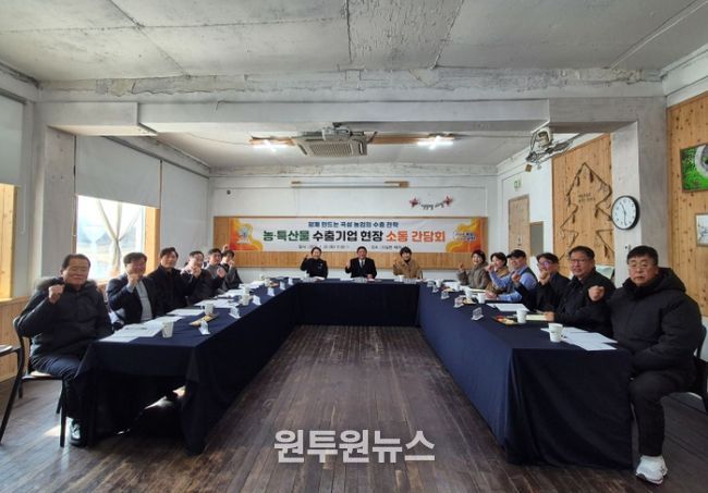 (원투원뉴스) 곡성군은 지난 20일 농업회사법인 미실란 세미나실에서 관내 농·특산물 수출기업을 대상으로 ‘농·특산물 수출기업 현장 소통 간담회’를 개최했다고 21일 밝혔다.