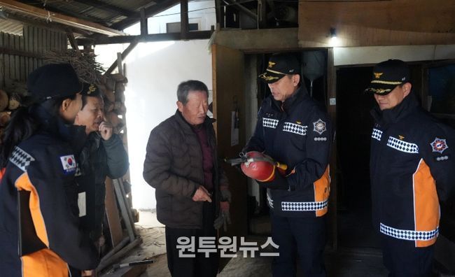 이날 현장에는 한창완 서장을 비롯한 소방공무원 5명과 인안2리 마을이장이 함께했으며, 화목보일러 안전관리 실태 점검과 함께 화재 예방 교육, 소화기 사용법 안내 및 소화기 전달이 이루어졌다.