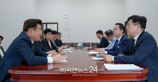 (비씨엔뉴스24) 오영훈 제주특별자치도지사는 17일 오전 국회에서 박찬대 더불어민주당 원내대표를 만나 제주형 기초자치단체 도입 추진, 에너지대전환을 통한 2035 탄소중립 제주 모델 실현, 제주권 상급종합병원 지정 건의 등 주요 현안을 설명하고 각별한 관심과 지원을 요청했다.
