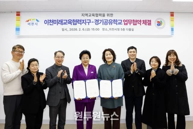 (원투원뉴스) 이천교육지원청은 2026년 2월 6일 이천시와 인성과 역량을 갖춘 지역의 미래인재 양성을 위한 업무협약을 체결했다.