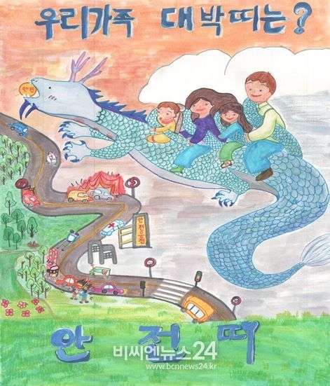 공모 결과 고산초 4학년 오승하 학생의 청룡의 해를 맞아 안전벨트를 청룡의 띠로 형상화해 안전벨트의 중요성을 강조한 ‘우리가족 대박띠는?’ 작품이 초등 고학년부 대상을 차지했으며, 초등 저학년부 대상은 동광초 3학년 문소율 학생의 도로를 안전벨트로 표현해 안전한 운전습관을 기르자는 의미를 담은 ‘실천!생활!습관!안전벨트’ 작품이 선정됐다.