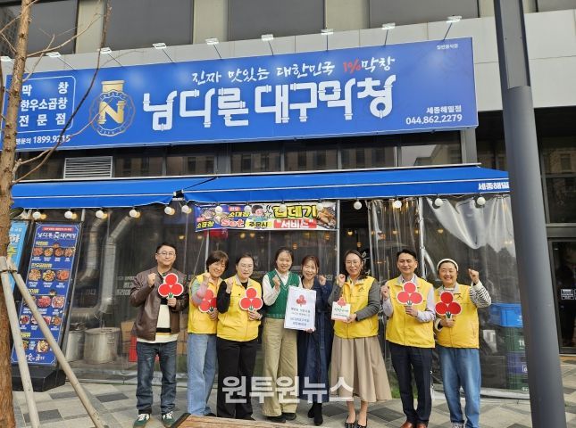 이날 ‘제이잉글리쉬어학원’, ‘남다른대구막창 세종해밀점’, ‘옥된장 세종해밀점’은 해밀동 착한가게 13호, 14호, 15호점으로 가입하고, 매월 일정금액을 기부해 어려운 이웃을 위한 나눔에 동참하기로 했다.