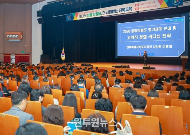 (원투원뉴스) 전북특별자치도교육청은 6일 전주학생교육문화관에서 유정기 교육감 권한대행을 비롯해 국·과장, 장학관·연구관, 5급 이상 고위공직자, 학교(원)장 등 850여 명을 대상으로 ‘2026년 고위공직자 특별 청렴교육’을 실시했다.