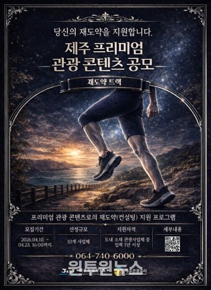 (원투원뉴스) 제주특별자치도와 제주관광공사(사장 고승철)는 오는 23일까지 온라인 채널을 통해 도내 관광사업체의 다양한 콘텐츠를 지원하기 위해 ‘트렌드 선도 프리미엄 관광 콘텐츠(재도약 트랙)’ 공모사업을 추진하고 있다고 13일 밝혔다.