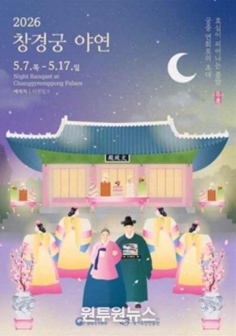 (원투원뉴스) 국가유산청 궁능유적본부는 국가유산청 산하 국가유산진흥원과 함께 가정의 달 5월을 맞아 2026년 상반기 '창경궁 야연(夜宴)(5월 7일~5월 17일)'과 2026년 '수라간 시식공감(5월 13일~5월 24일)'을 개최한다.