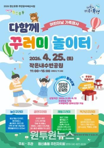 (원투원뉴스) 대전 유성구는 오는 25일 작은내수변공원에서 어린이날 가족 행사 ‘다함께 꾸러미 놀이터’를 개최한다.