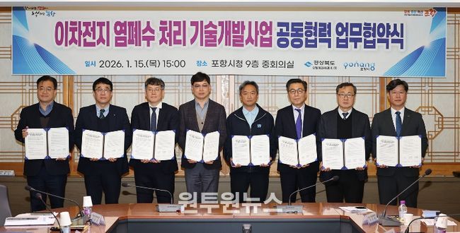 경북도는 기후에너지환경부가 주관하는 2026년도 ‘이차전지 염폐수 처리 기술개발사업’ 신규 과제 공모에서, 지난 1월 기술개발 지원을 위해 경북도․포항시가 업무협약을 맺은 기업 중 ㈜BIT범우 등 5개 주관기업들이 참여한 5개 과제 모두 최종 선정됐다.