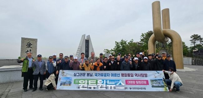(원투원뉴스) 국가보훈부 인천보훈지청에서는 4월 22일 대한불교천태종 산하 단체인 (사)나누며하나되기와 협업을 통해 고령 국가유공자 어르신들을 모시고 평화통일 역사탐방을 추진했다고 밝혔다.