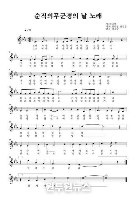 끝으로, 제1회 정부 기념행사를 개최하며 제작한 기념곡 ‘순직의무군경의 날 노래’를 가수 라포엠과 대학생연합합창단의 선도로 참석자 모두가 제창하며 기념식이 마무리된다.