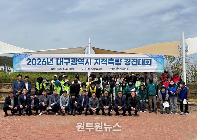 (원투원뉴스) 대구광역시는 4월 23일 북구 검단들공원에서 9개 구·군 지적공무원들이 참여하는 ‘2026년 지적측량 경진대회’를 개최했다. 이번 대회 결과, 중구가 최우수상의 영예를 안았으며, 북구와 동구가 각각 우수상과 장려상을 받았다.