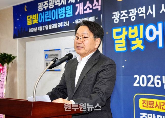 (원투원뉴스) 광주광역시는 어린이들이 야간·휴일에도 안심하고 치료받을 수 있도록 서구 ‘우리아동병원’을 ‘제4호 달빛어린이병원’으로 추가 지정, 27일 개소식과 함께 운영에 들어갔다.