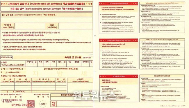 고지서 전면에는 납부 방법·기한·체납 시 불이익 등 주요 정보와 납부 절차를 외국인 체납자의 주요 사용 언어를 반영해 영어와 중국어로 병기했다.