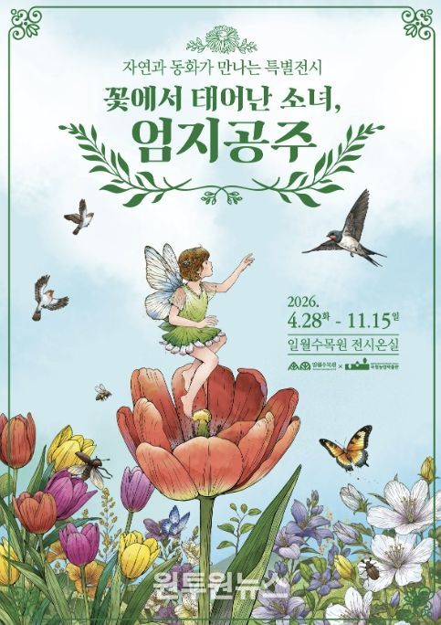 (원투원뉴스) 수원시 일월수목원이 안데르센 동화 ‘엄지공주’를 모티브로 한 특별기획전 ‘꽃에서 태어난 소녀, 엄지공주’를 11월 15일까지 전시온실에서 개최한다.
