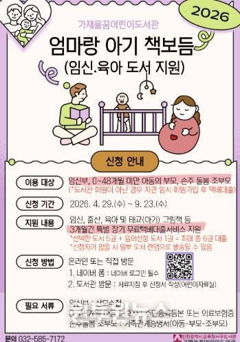 (원투원뉴스) 인천광역시교육청서구도서관은 29일부터 임산부와 초보 양육자를 대상으로 ‘엄마랑 아기 책보듬’서비스를 시작한다.