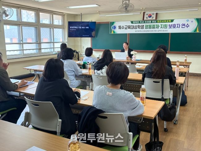 (원투원뉴스) 대전서부교육지원청은 4월 29일 관내 유치원 및 초·중학교 특수교육대상학생 보호자를 대상으로 ‘2026학년도 행동 중재 지원을 위한 보호자 연수’를 운영했다고 밝혔다.