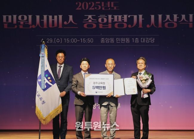 (원투원뉴스) 광주시교육청이 행정안전부에서 시행한 ‘2025년 민원서비스 종합평가’에서 전국 시·도교육청 1위를 달성했다.