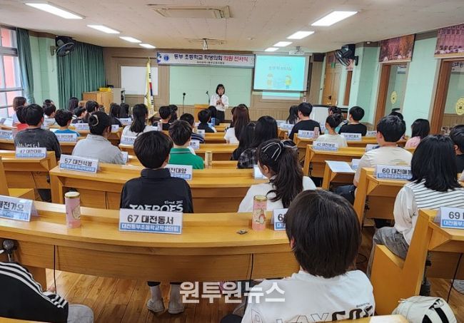 (원투원뉴스) 대전동부교육지원청은 학생 자치 활동 활성화와 민주적 학교 문화 조성을 위해 4월 29일 대전대흥초등학교 어린이 의사당에서 ‘2026학년도 동부 초등학교 학생의회 선서식 및 역량 강화 연수’를 실시했다고 밝혔다.