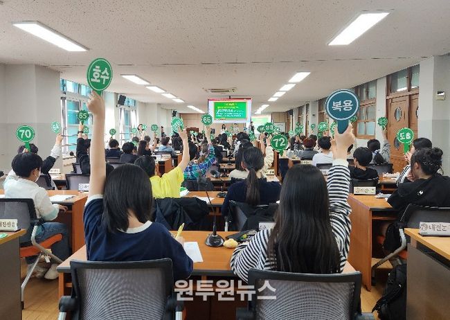 회의 직후에는 학생이 주체가 되는 학교 문화 조성을 위해 대전시선거관리위원회 민주 시민 교육 전문 강사를 초빙하여 ‘학생 중심 학교 문화 조성을 위한 자치 역량 강화 교육’ 특강을 진행했다. 이를 통해 학생들의 자치 역량을 한층 더 강화할 방침이다.