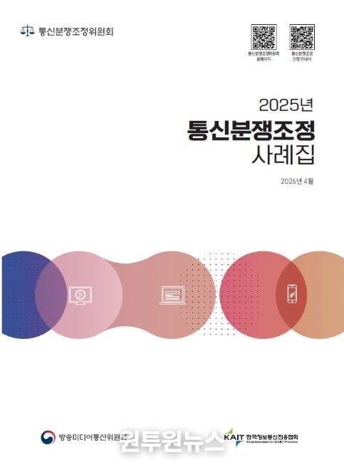 방송미디어통신위원회는 30일 통신서비스 이용 계약 및 해지, 속도 품질 등 서비스 이용 과정에서 발생한 다양한 분쟁 사례를 유형별로 엮은 ‘2025년 통신분쟁조정 사례집’을 발간했다고 밝혔다.