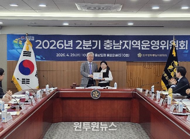 (원투원뉴스) 민주평화통일자문회의 충남지역회의는 29일 충남도청 본관 중회의실 510호에서 운영위원 20명이 참석한 가운데 ‘2026년 2분기 충남지역운영위원회’를 개최했다.