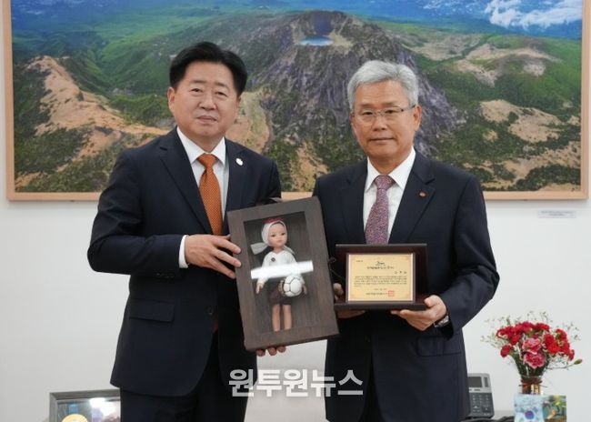 오영훈 제주특별자치도지사는 29일 오후 3시 도청 집무실에서 김동철 사장에게 명예도민증을 직접 수여했다. 도는 앞서 지난 3월 김 사장을 명예도민으로 선정한 바 있다.