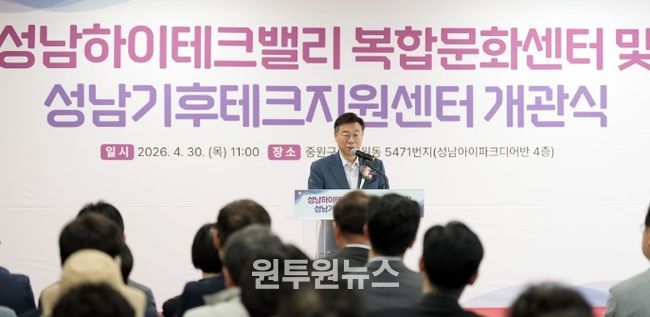 (원투원뉴스) 성남시가 산업단지 내 공공지원 기능을 강화하고 근로자 복지 증진과 기후테크 산업 육성을 위해 조성한 ‘성남하이테크밸리 복합문화센터’와 ‘성남 기후테크지원센터’가 4월 30일 오전 11시 개관식을 열고 본격적인 운영에 들어갔다.