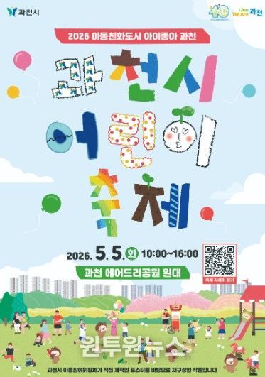 (원투원뉴스) 과천시는 다가오는 5월 5일 제104회 어린이날을 맞아 어린이와 가족이 함께 참여하는 ‘2026년 과천 어린이 축제’를 과천에어드리공원 일대에서 개최한다고 밝혔다.